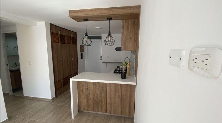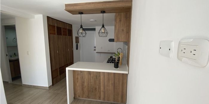 ARRIENDO APARTAMENTO EN LOS ALCÁZARES ¡Oportunidad de adquirir un hermoso apartamento en Los Alcázares! Este acogedor apartamento en el piso 16 ofrece un diseño funcional y espacios bien distribuidos, ideal para quienes buscan comodidad y practicidad. Espacios Amplios y Bien Distribuidos Con un área construida de 40 m², este apartamento consta de sala comedor, cocina integral, 2 habitaciones, 2 baños y zona de lavandería. Cuenta con excelente iluminación y ventilación natural, perfecta para disfrutar de un ambiente agradable. Características adicionales: Pisos en laminado y cerámica, brindando un estilo moderno y fácil mantenimiento. Acceso y Ubicación El apartamento está ubicado en un edificio en el piso 16, en estrato 4, con fácil acceso a transporte público y cercanía a zonas comerciales y parques, lo que proporciona un entorno cómodo y bien conectado. Parqueadero: Incluye garaje para un vehículo. ¡No pierdas la oportunidad de vivir en este maravilloso apartamento! Contáctanos hoy mismo para más información y para agendar una visita.