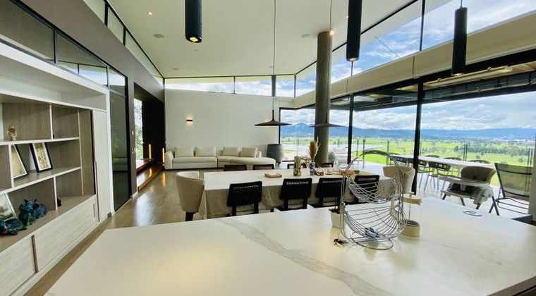 Esta casa de lujo combina diseño moderno, amplitud y una ubicación privilegiada. Con 360 m² construidos en un terreno de 3.000 m², se distingue por su arquitectura de techos altos y espacios llenos de luz natural gracias a sus ventanales de gran formato, que además enmarcan espectaculares vistas a la ciudad de Bogotá. Su distribución interior resalta la amplitud y la conexión con el entorno, creando ambientes ideales para la vida familiar y social. La zona de barbecue ofrece el espacio perfecto para compartir con amigos y disfrutar de la tranquilidad del lugar. Ubicada en un conjunto exclusivo y de fácil acceso, permite vivir rodeado de naturaleza sin renunciar a la cercanía con la ciudad. Una residencia única que refleja elegancia, confort y calidad de vida en un ambiente seguro y privilegiado.